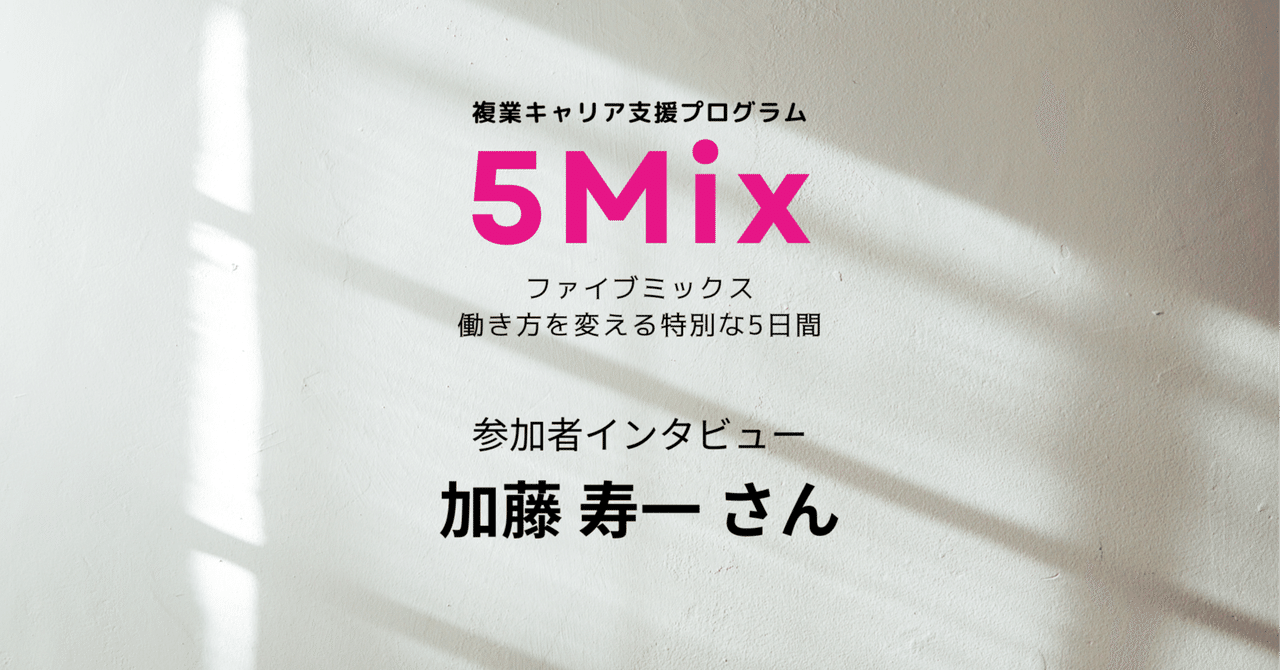 もともと行動指針とか目標はあんまり決めるの好きじゃないんです 複業キャリア支援プログラム「5Mix(ファイブミックス)」に参加した加藤さん。思いついたらすぐに行…